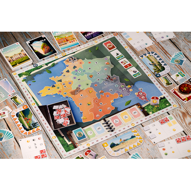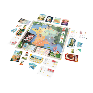 Postcards is een vrolijk bordspel waarin je op je fiets door 13 kleurrijke regio’s racet, op zoek naar de mooiste ansichtkaarten en unieke souvenirs. Zet tactisch je kamp op, plak postzegels, en deel als eerste je avonturen met het thuisfront. Elke ansichtkaart levert je punten en cadeaus op. Door je routes goed te plannen word jij misschien wel de beste reiziger van de regio! Postcards zit boordevol slimme keuzes, vrolijke illustraties en een flink gevoel van avontuur!