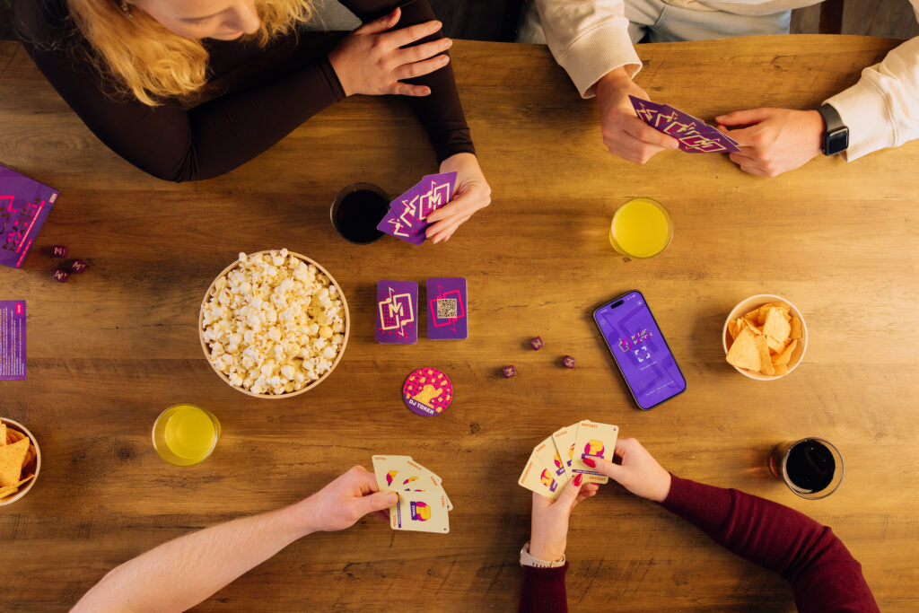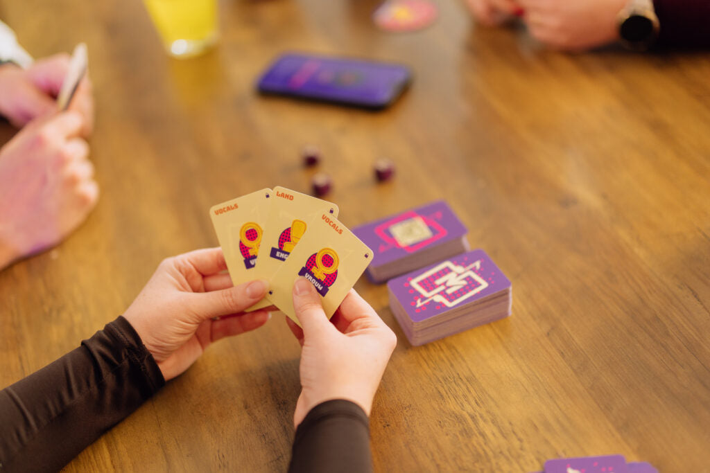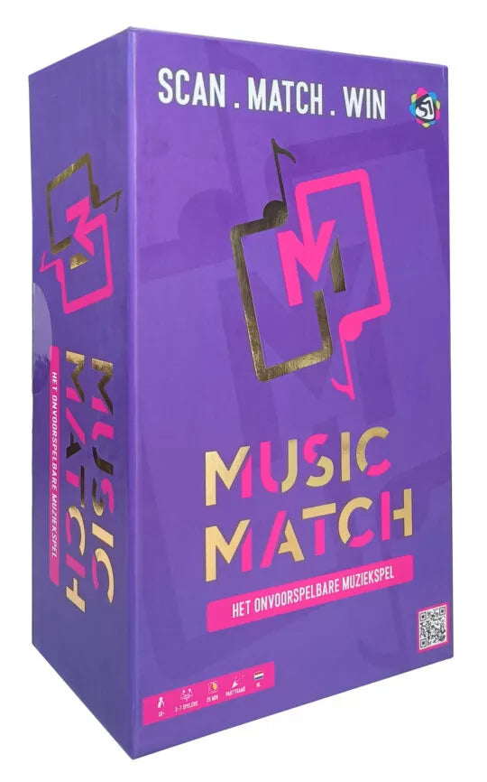 Music Match is een muzikaal kaartspel waarbij je als eerste al je kaarten probeert weg te spelen. Scan een QR-Kaart (compatibel met Android en iOS) en match een kaart uit je hand met de muziek, bijvoorbeeld op artiest, genre of decennium. Draai de kaarten om en ontdek wie er goed zat!