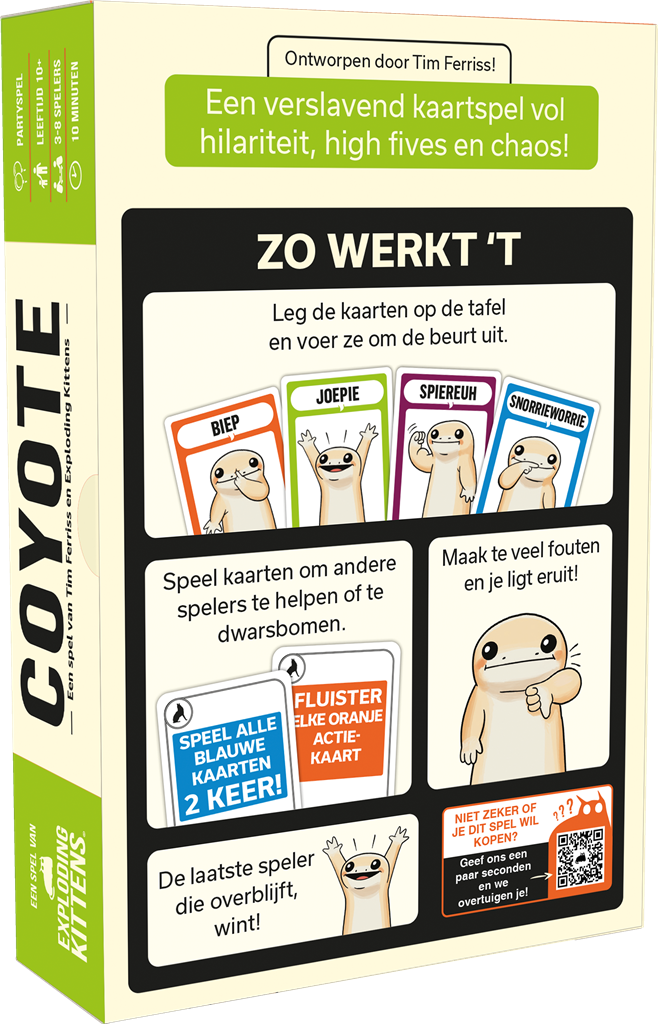 Gemaakt door Tim Ferriss, het brein achter The 4-Hour Workweek, Tools of Titans en meer. Coyote zorgt ervoor dat in dit familiespel iedereen gefocust is én in een deuk ligt.