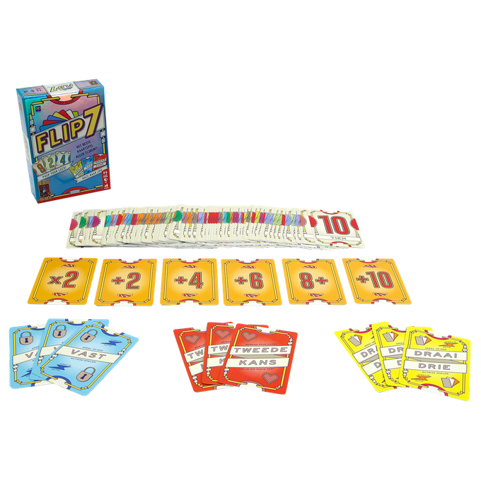 Flip 7 is het ideale kaartspel voor kleine en grote groepen. De eenvoudige spelregels en korte spelduur zorgen ervoor dat je met Flip 7 van elk moment een superspannend speelmoment kunt maken! Ben jij het type dat op tijd stopt en je punten veilig stelt of neem je liever het risico om alles te verliezen voor de kans om 7 verschillende kaarten om te draaien? Daag al je vrienden en familie uit en kom erachter wie het meeste lef en geluk heeft in Flip 7!